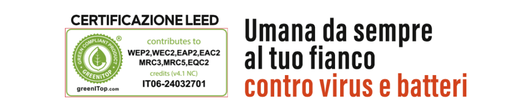 Ideata per creare un processo di prevenzione attraverso una barriera protettiva, le qualità fotocatalitiche proprie di Umana con l’aggiunta di principi attivi, permettono, infatti, di garantire un’azione battericida, virucida, antimuffa ed igienizzante anche all’esterno.